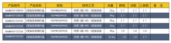 四向三腿——C型盲筋面鋼托盤 主要用途: 倉庫、車間周轉、物流倉儲